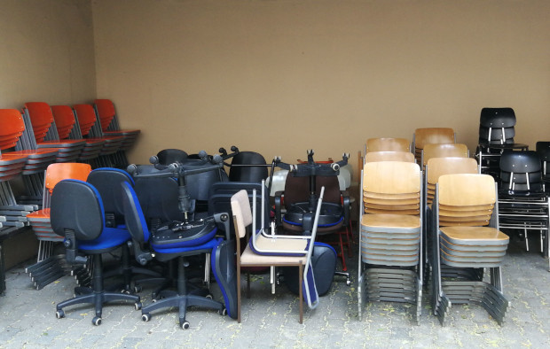 Neues Mobiliar hält am Ende Einzug in den PC-Raum und die Klassenräume des Berufsvorbereitungsjahrs. Das verbleibende ordentliche Mobiliar erfreut sich über eine Intesivwäsche und erstrahlt danach in genauso neuem Glanz.